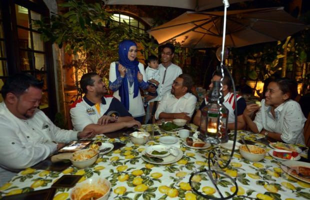 Siti bermesra dengan rakan media yang turut hadir pada majlis sambutan hari jadinya yang diadakan di kediamannya.