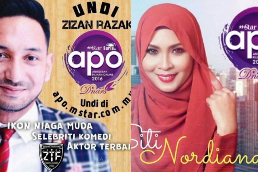 PETALING JAYA: Kempen dilakukan kelab peminat artis menyaksikan Zizan Razak memenuhi ruang rangkaian media sosial menerusi hastag #APO2016 dalam usaha meraih sokongan dalam Anugerah Pilihan Online 2016 (APO2016).
