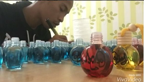 "Saya tempah pelekat sendiri, bancuh wangian dan masukan wangian itu ke dalam botol sendiri. Bagi saya ia kerja mudah sahaja dan jika buat sendiri boleh jimat kos orang tengah.