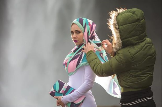 Nora terpaksa menahan kesejukan bagi memastikan hasil gambar yang menarik.