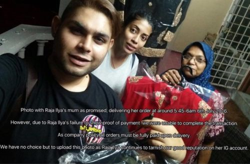 "Namun begitu, ketika sampai di kediaman aktres itu, kami tidak dapat memberi baju-baju tersebut kerana tiada sebarang pembayaran daripada pihak dia dan keluarganya," ujarnya.