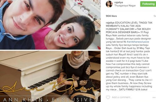PETALING JAYA: Pemilik Ann Khan Exclusive, Noorain Khan menjelaskan bahawa tiga helai baju raya tempahan aktres Raja Ilya tidak diserahkan kepada pelakon itu berikutan tiada sebarang pembayaran.