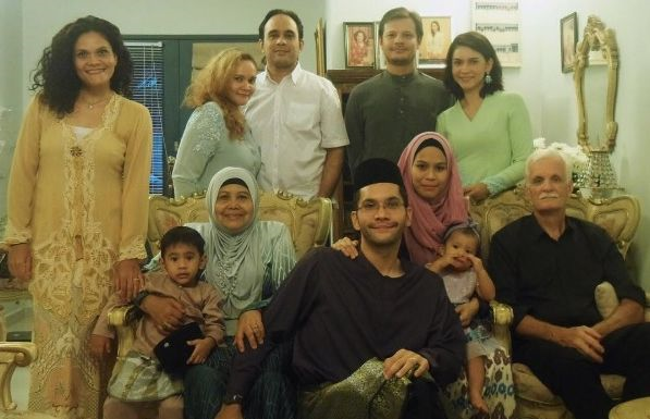 Julia (berdiri - kanan) bersama Johan (dua dari kanan) bergambar bersama ahli keluarganya.