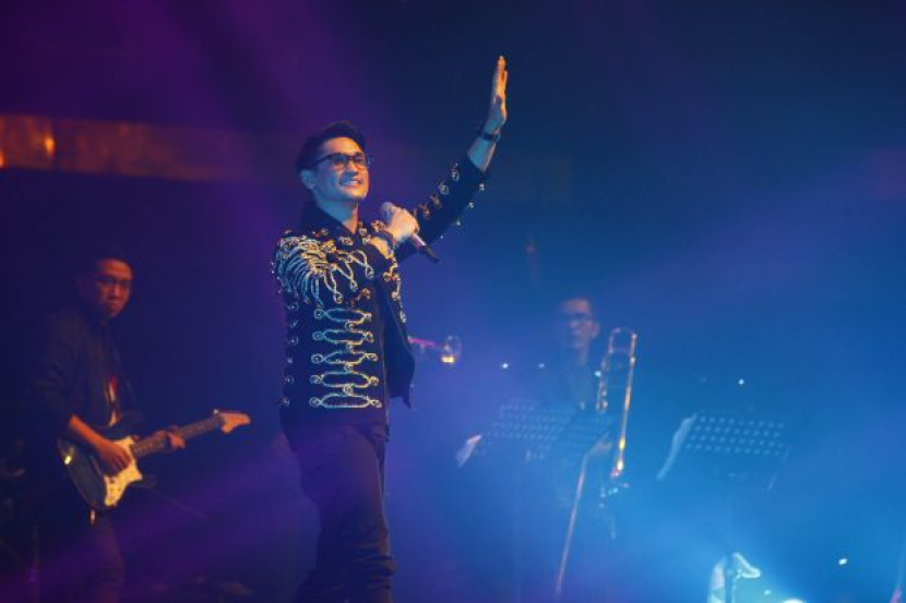 Persembahan Afgan turut diiringi oleh pemuzik dan penyanyi latar.