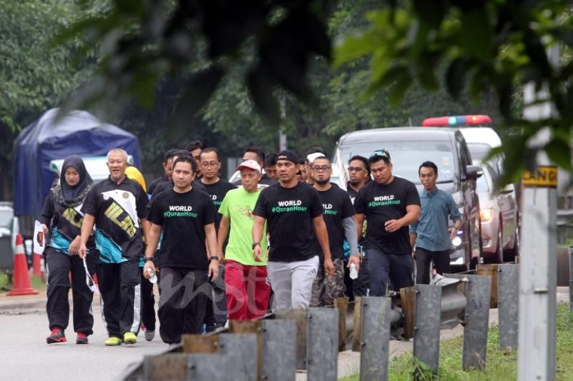 Rosyam Nor (bertopi, depan) berjalan kaki sejauh 47.2 kilometer untuk mengajak orang ramai menghayati Al-Quran. Foto M AZHAR ARIF.