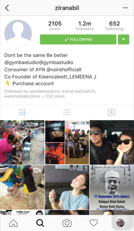 Akaun @ziranabil yang mempunyai 1.2 juta pengikut digodam pada Selasa.
