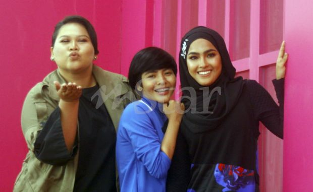 Ardell bergandingan dengan Sherrry Alhadad (kiri) dan Elfira Loy (kanan) dalam program travelog iaitu Extreme Roadtrip.
