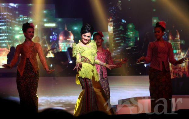Krisdayanti tampil dengan kebaya pada persembahan segmen tribute kepada Saloma dan Sudirman.