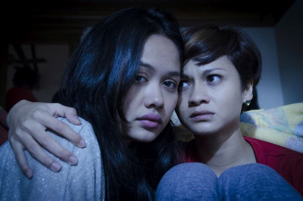 Liyana Jasmay (kiri) dan Sharifah Amani menjadi mangsa pemerdagangan manusia dalam filem Sindiket.