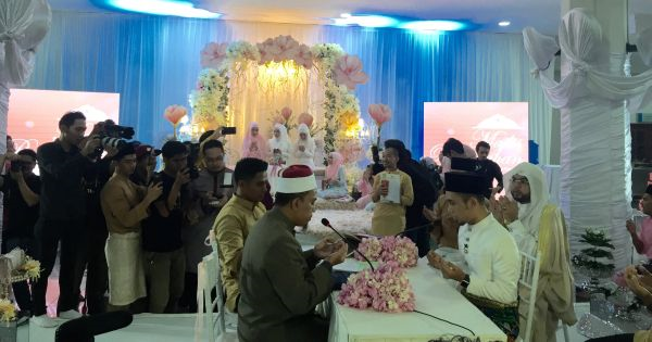 Pasangan itu disatukan dalam sebuah majlis sederhana kira-kira pukul 3.20 petang di Dewan Masjid Negeri, di sini.
