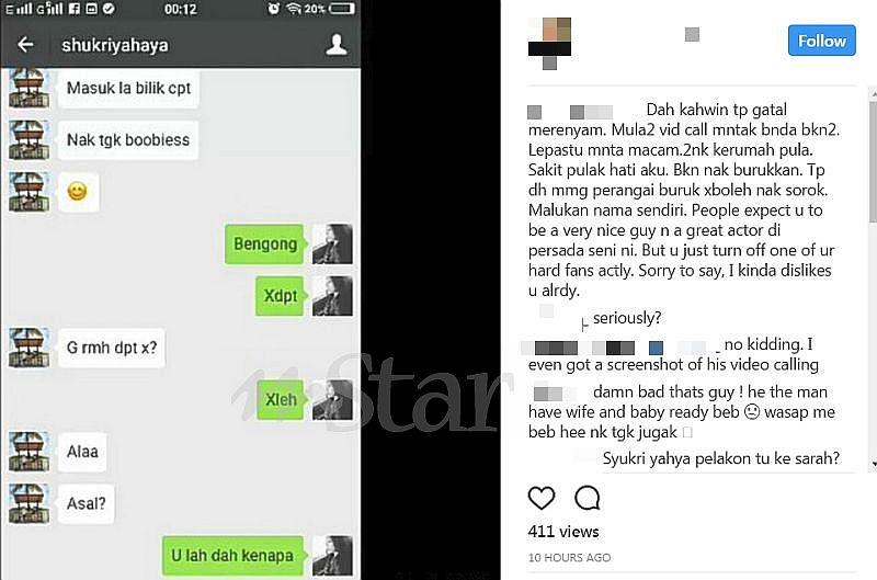 Individu berkenaan turut mendakwa dia mempunyai bukti rakaman perbualan video dengan pelakon lelaki tersebut, namun tidak dimuat naik atas sebab-sebab tertentu.