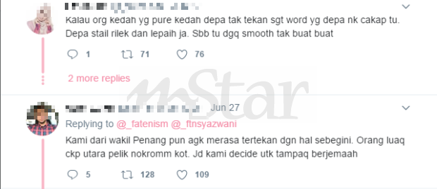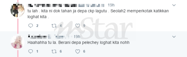 "Kita ni tahan ja depa cakap lagu tu. Seolah-olah memperkotak-katikkan loghat kita. Berani depa pelechey (memperlekeh) loghat kita noo.