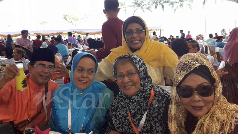 Norlia Ghani (duduk dua dari kanan) bersama rakan-rakan artis seangkatan dengannya.
