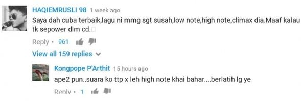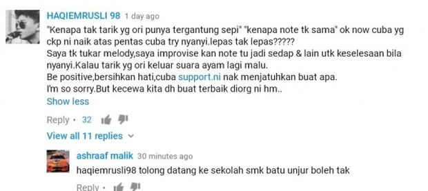 "Saya tak tukar melodi, saya improvise kan note tu jadi sedap & lain utk keselesaan bila nyanyi. Kalau tarik yang ori keluar suara ayam lagi malu.
