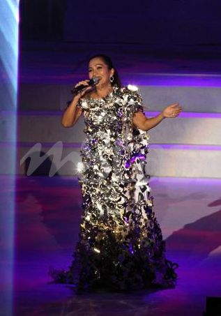 Penyanyi legenda ini mengenakan empat persalinan yang direka oleh Michael Ong.