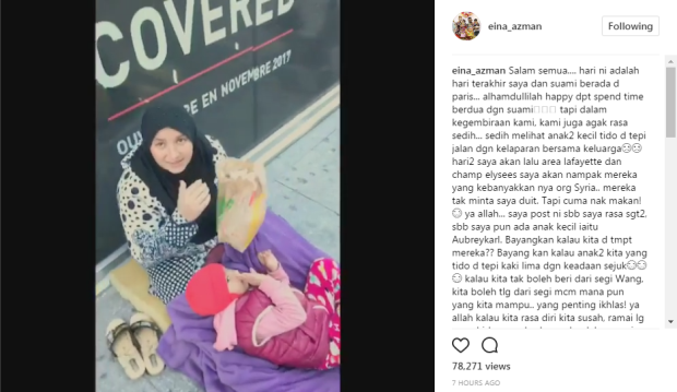 Perkongsian Eina mengenai bantuan gelandangan di Paris mendapat perhatian pengikutnya.