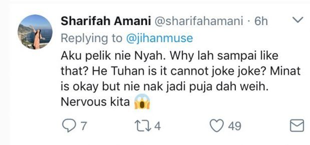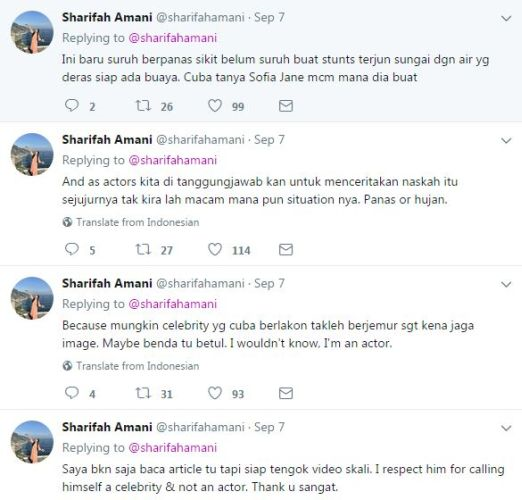 PANDANGAN diutarakan oleh aktres Sharifah Amani terhadap Fattah Amin nampaknya mengundang kemarahan peminat setia pelakon itu di Twitter. Rata-rata menyifatkan Amani ingin mencari publisiti murahan apabila mengeluarkan komen berhubung tajuk sebuah artikel yang menyatakan Fattah tidak boleh berjemur ketika menjalani penggambaran. Lebih menimbulkan kemarahan mereka apabila Amani mendakwa peminat terlalu memuja Fattah sehingga menyebabkan dia diserang netizen di laman sosial itu. "Minat itu boleh tapi ini nak jadi puja dah wei. Nervous kita," kata Amani. Salah satu komen balas daripada netizen. Lakonan Amani juga turut menjadi sasaran apabila ada menyifatkan pemenang Pelakon Wanita Terbaik, Festival Filem Malaysia ke-19 (FFM19) itu sering memberikan ekspresi sama dalam watak dibawanya. "Entah apa-apa nak tuduh peminat taksub sedangkan memang minta dikecam. Nak publisiti, cakap sahaja, tak dayalah sendu-sendu gini," tulis @soniakincaid. Bagaimanapun Amani atau Sharifah Amani Syed Zainal Rashid Al-Yahya, 31, berkata, dia menghormati Fattah yang menggelarkan dirinya selebriti dan bukan pelakon. Malah dia juga berpendapat bahawa seorang selebriti yang cuba berlakon tidak boleh berjemur di tengah panas disebabkan ingin menjadi imejnya. Amani hairan peminat terlalu memuja artis kesayangan mereka. "Saya bukan sahaja baca artikle itu tapi siap tengok video sekali. Saya hormat dia kerana mengelar diri sebagai selebriti bukan pelakon. "Terima kasih sangat, sebab mungkin selebriti cuba berlakon tak boleh berjemur sangat kena jaga imej. "Mungkin benda itu betul. Saya tidak tahu. Saya seorang pelakon," kata Amani. Tambah Amani lagi, sebagai seorang pelakon, perlu ada bertanggungjawab untuk menceritakan nashkah diberikan dengan sejujurnya tidak kira berada dalam situasi panas atau hujan. Kenyataan Amani telah mengundang kemarahan peminat fanatic Fattah Amin. Amani juga meminta untuk bertanya kepada pelakon Datin Sofia Jane bagaimana beliau melakukan terbaik dalam setiap lakonannya. "Sebagai pelakon kita diberi tanggungjawab untuk menceritkan nashkah itu sejujurnya tak kiralah macam mana pun situasinya. Panas atau hujan. "Ini baru suruh berpanas sikit, belum suruh buat lagak ngeri terjun sungai dengan air deras siap ada buaya. Cuba tanya Sofia Jane macam mana dia buat," tulisnya. Terdahulu Nabil menerusi Twitter meninggalkan komen berhubung tajuk sebuah artikel mengenai Fattah yang tidak boleh berjemur telah membuatkan peminat tidak berpuas hati dengan pelawak itu.