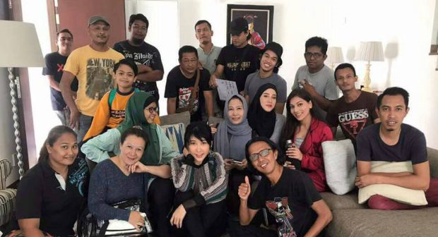 Barisan pelakon dan kru penggambaran drama Laluna.