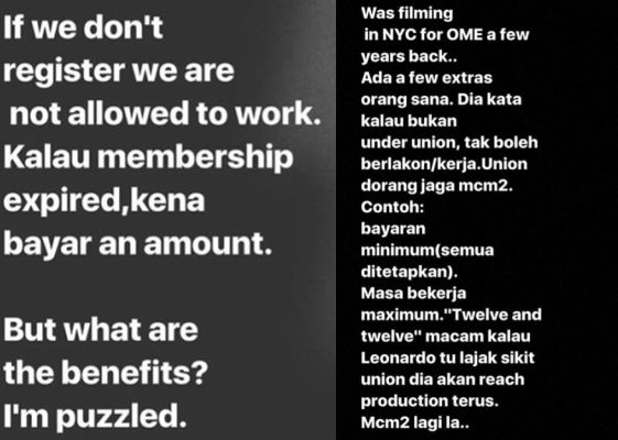 Katanya, pelakon tambahan di sana mendapat perhatian dan dijaga oleh kesatuan dari segi bayaran dan masa bekerja minimum.