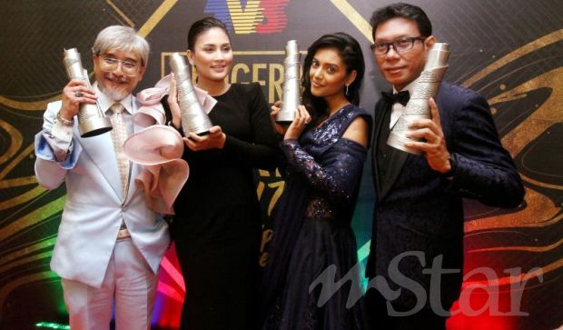 Hasnul Rahmat, Fasha Sandha, Sangeeta Krishnasamy dan Khir Rahman bersama trofi kemenangan masing-masing.