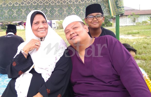 Fauziah bersama anak ketiga, Fariz Adil dan cucu.