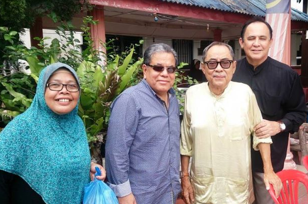 Omar Manan (dua dari kanan) ketika menerima lawatan sahabat-sahabatnya iaitu produser filem Datuk Yusof Haslam (kanan), Bekas Pengerusi Media Prima Berhad, Tan Sri Johan Jaaffar (tiga dari kanan) dan bekas Presiden, Kesatuan Wartawan Kebangsaan (NUJ), Norila Daud.