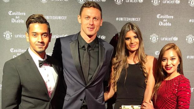 Pasangan ini tidak melepaskan peluang bergambar bersama Nemanja Matic dan isteri.