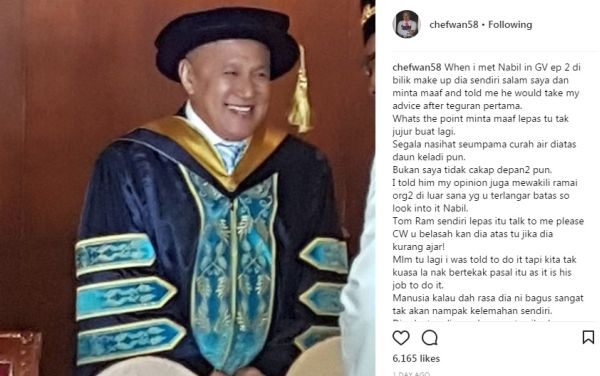 Chef Wan muat naik status menegur cara Nabil sebagai biadap.