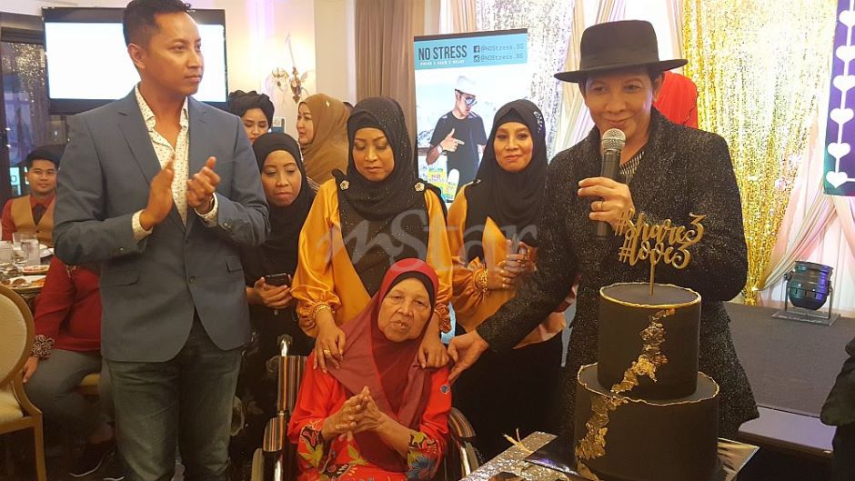 Majlis ulang tahun kelahiran Roslan Shah (tengah) turut dimeriahkan dengan kehadiran Azza dan penyamai radio Warna Singapura iaitu Mohd Tahar Galib (TG).