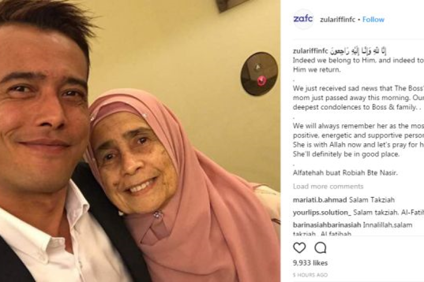 "Sama-sama kita doakan semoga Allahyaraham berada di tempat yang baik," tulis pada kapsyen itu berserta foto Zul bersama ibu kesayangannya.
