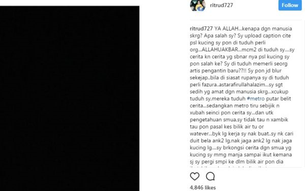 "Saya cerita yang sebenar tentang kucing saya pun salah ke, saya dituduh memerli seorang artis pengantin baru?