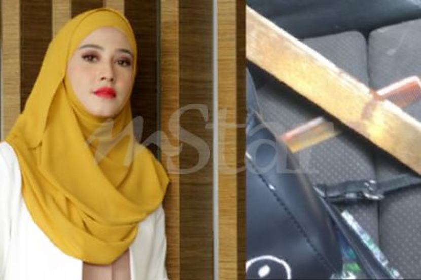 Fathia turut memuat naik foto parang yang tersimpan dalam keretanya bagi tujuan kecemasan.