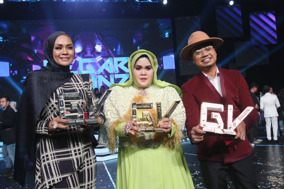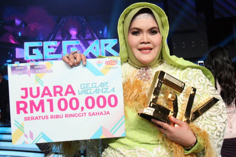 JOHOR BAHRU: Penyanyi Aishah yang memberi saingan pada saat-saat akhir diumumkan sebagai juara pertandingan Gegar Vaganza musim keempat (GV4) yang berlangsung di Studio Pinewood, di sini, pada malam Ahad.