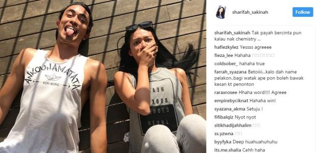 Sakinah, 28, berkata kapsyen yang dimuat naik itu hanya menjelaskan tentang hubungan baik dan keserasian yang dicapai antara dia dengan aktor itu bukan sekadar dalam drama semata-mata, malah juga di luar set penggambaran.