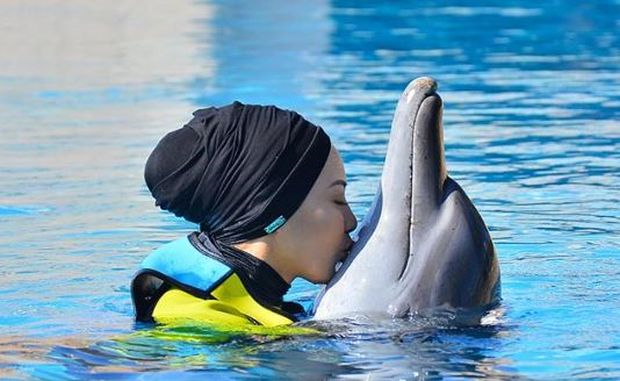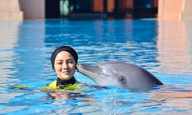 Netizen cemburu ikan lumba-lumba berpeluang mencium pipi Neelofa.