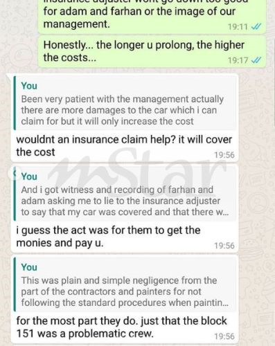 "Saya benci bila perlu jadi seperti ini. Pada bulan November lalu, mereka merosakkan kereta saya sebab kantraktor yang mengecat kondominium tidak mengikut prosedur yang betul.