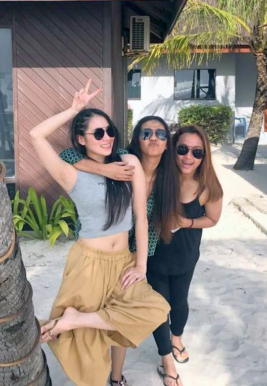 Elvina (kiri) bersama rakan-rakannya. Dia hairan bagaimana gambar peribadi ini tersebar.