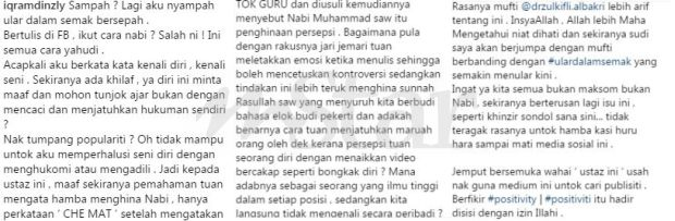 Sementara itu, Iqram menerusi Instagramnya memohon maaf jika pemahaman Abu Syafiq yang mengatakan dia menghina Nabi itu adalah penghinaan persepsi.
