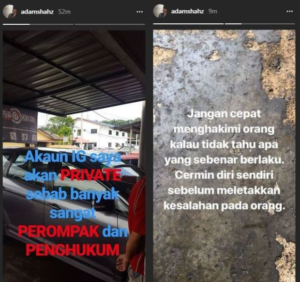 Terdahulu, Adam memuat naik status di InstaStory memberitahu Instagramnya banyak 'perompak' dan 'penghukum'.