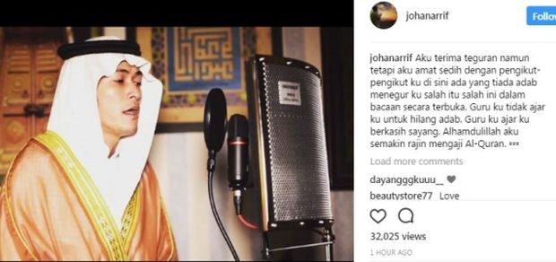 Johan antara selebriti yang kerap memuat naik video mengaji di Instagram.