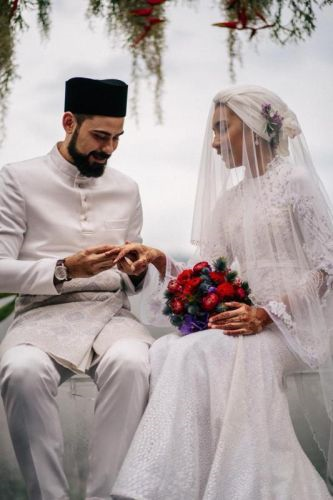 Adam menyarungkan cincin ke jari Yuna. Foto Ihsan @weddingsbyqay