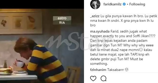 "Kenapa padam gambar puji Tun M?, must be something," tulis salah seorang netizen pada foto terbaharu yang dimuat naik aktor itu pada Rabu.