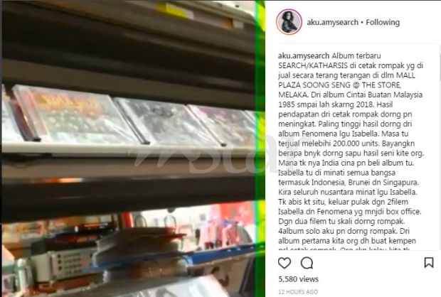 Menerusi perkongsian di laman Instagram, Amy berkata, setelah 37 tahun berada dalam industri seni, isu penjualan cetak rompak masih berleluasa seakan tiada penghujungnya.