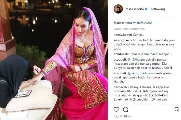 TINDAKAN Fasha Sandha memuat naik gambarnya di Instagram memakai pakaian tradisi masyarakat India iaitu lenga ketika menghadiri majlis berinai pelakon Elvina Mohamad baru-baru ini menyebabkan dia menjadi sasaran netizen.