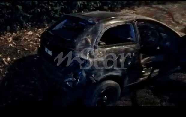 Kereta salah seorang kru produksi drama Mona Lisa yang remuk selepas kemalangan.