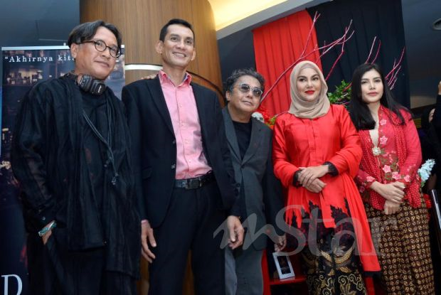 Barisan pelakon Dukun (dari kiri); Hasnul Rahmat, Faizal Hussein, Dain Said (pengarah), Umie Aida dan Elyana.