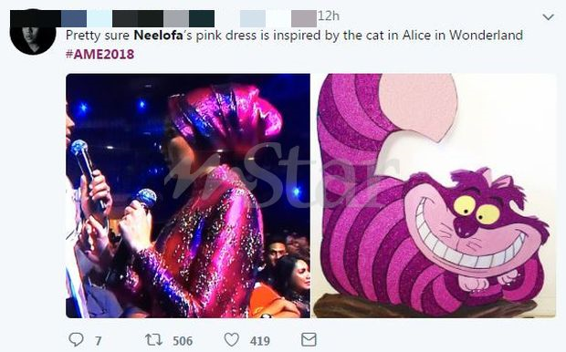 Netizen menyamakan gaun Neelofa seperti watak kucing dalam Alice's Adventure in Wonderland.
