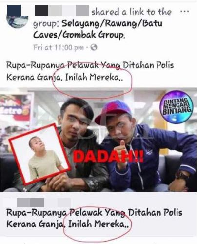 Sebelum ini, seorang pelawak dilaporkan ditahan polis selepas pihak berkuasa itu menemui ganja seberat 7.5 gram dan alat menghisap ganja di kediamannya di Taman Melati dekat sini pada 22 Februari lalu.