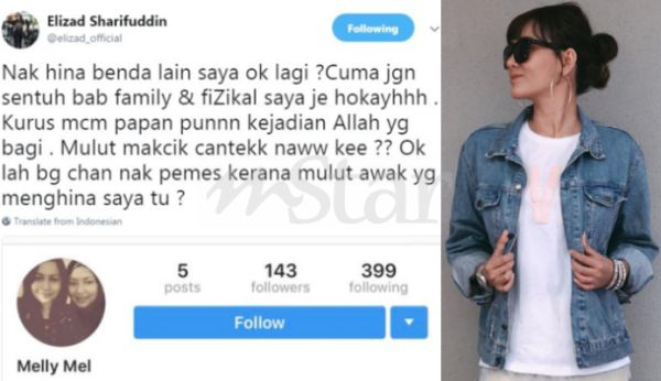 PETALING JAYA: Pelakon Elizad Sharifuddin menegur tindakan biadap individu yang menghina bentuk tubuh badannya yang disamakan seperti papan.