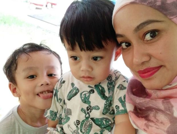 Intan bersama anak sulungnya, Arish Muqri (kiri), 3, serta Ariq Muqri, 1.